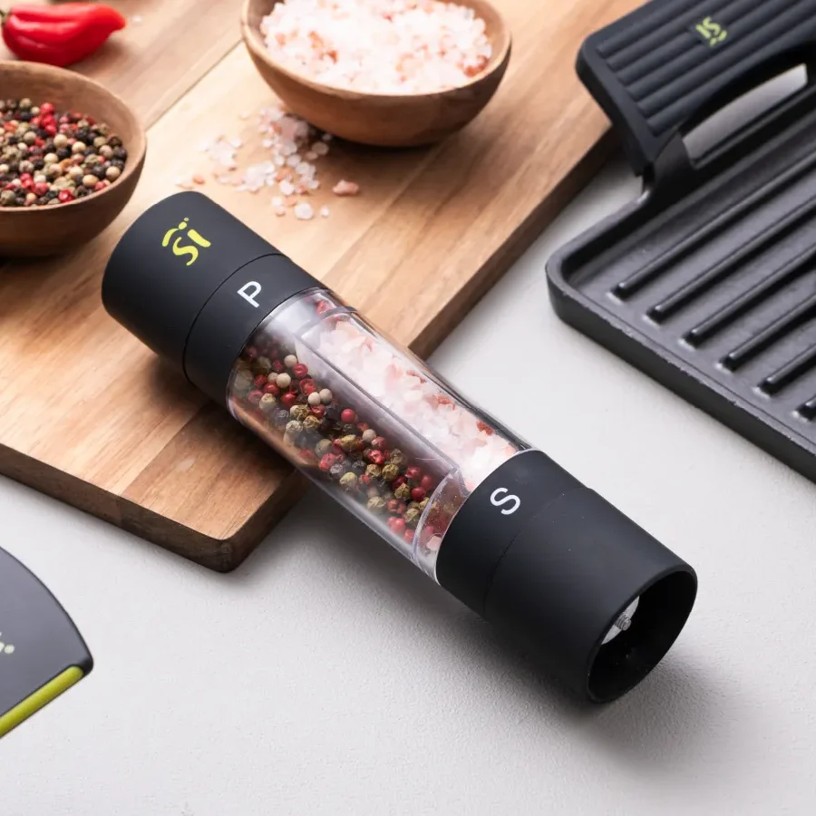 Molinillo de sal y pimienta, resistente y duradero, que te permitirá moler con facilidad cualquier especia para darle el toque deseado a tus platos. Fácil de rellenar y limpiar.