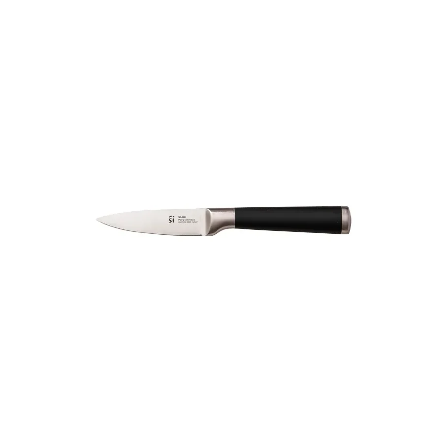 Descubre la versatilidad y precisión que ofrece el set de 4 cuchillos de la colección Xtra de San Ignacio. Este conjunto incluye cuatro piezas esenciales: un cuchillo de cocinero de 20 cm, un cuchillo Santoku de 17.5 cm, un cuchillo multiusos de 12.5 cm y un cuchillo pelador de 9 cm.